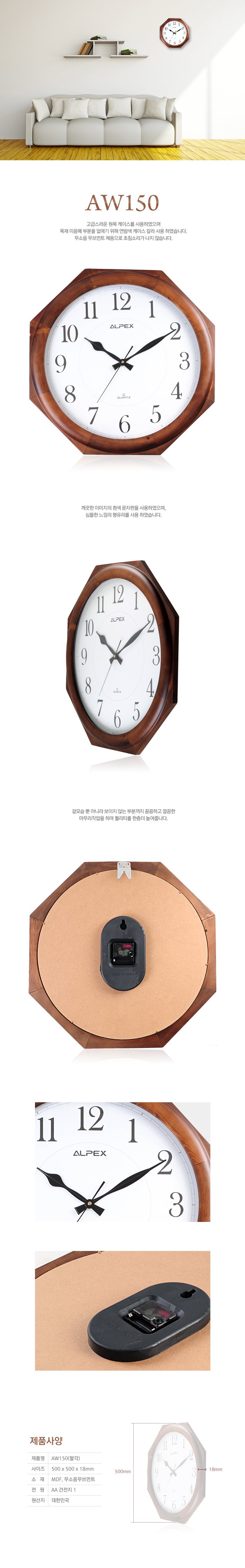 ¾ËÆå½º º®½Ã°è AW-150 12°¢ (º®°ÉÀÌ ½Ã°è)